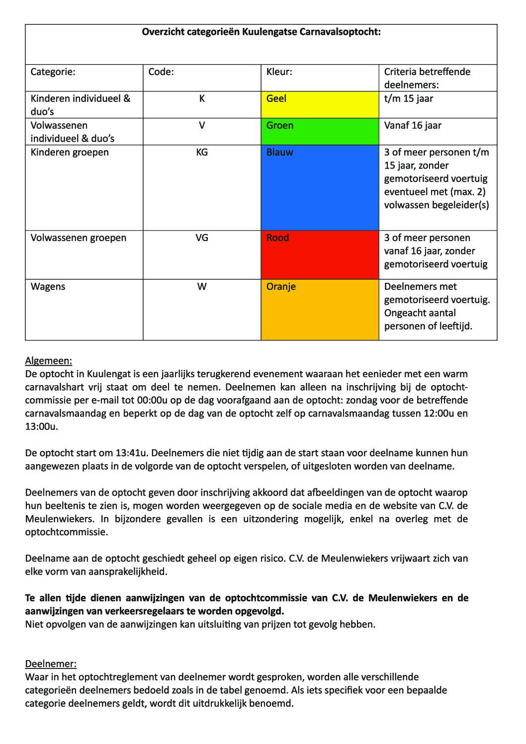 BELANGRIJK: Lees het optochtreglement hieronder goed door om op de hoogte te zijn van de optochtregels.